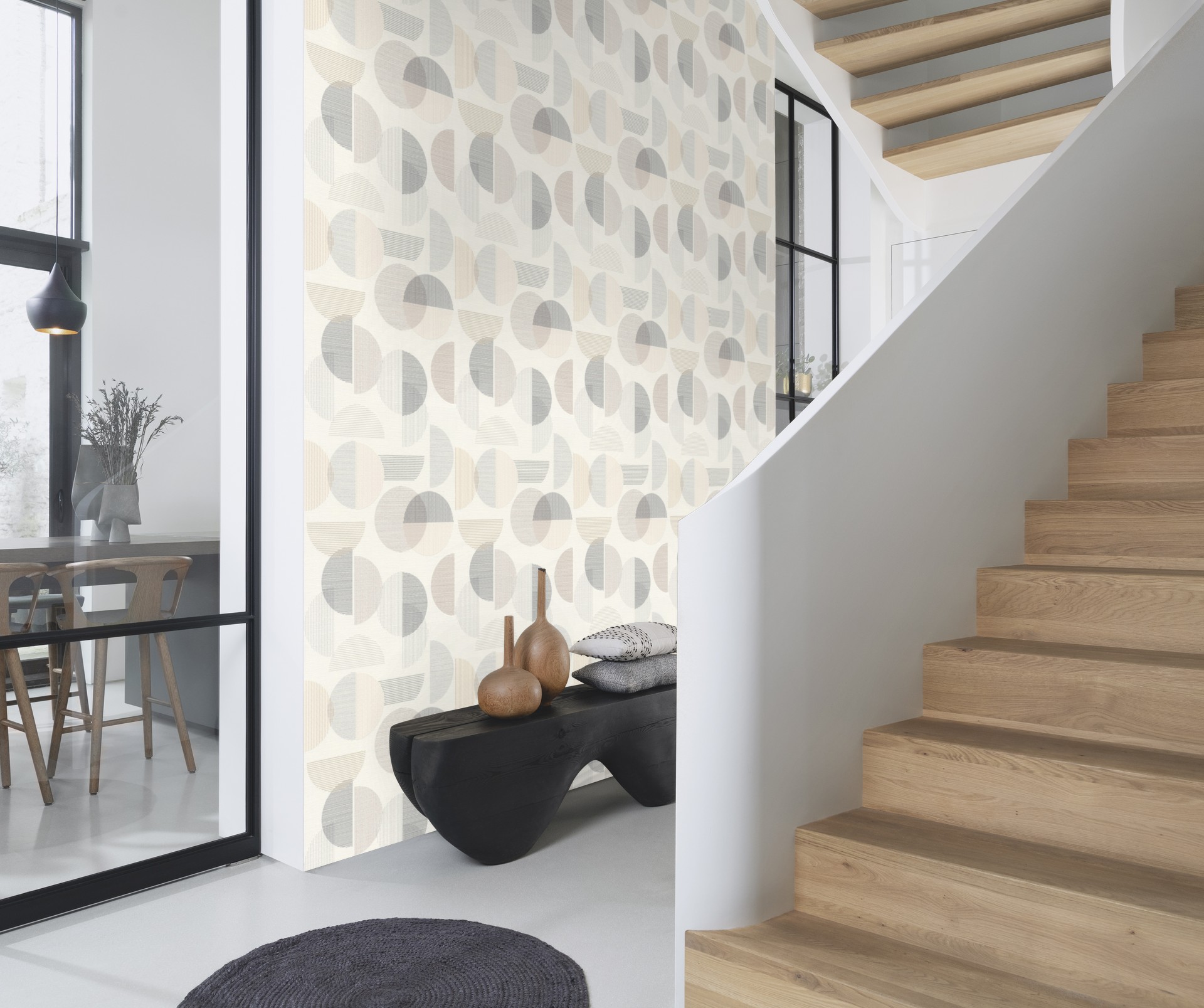 Moderne Eleganz mit geometrischen und grafischen Tapeten Abstarkte grafische Tapetendesigns verwandeln Deine vier Wände in ein Kunstwerk und strahlen moderne Raffinesse aus. Die Designs bieten eine reiche Palette an Mustern, von scharfen Linien bis hin zu Karos und Rauten, passend für jeden Geschmack - ideal für Liebhaber von minimalistischem Design, skandinavischem Chic oder kühnem Futurismus. Ob feine Linienführungen oder kühne abstrakte Art Deco Formationen - jedes Design kann perfekt mit unifarbenen Tapeten kombiniert werden, um beeindruckende Kontraste und eine starke visuelle Wirkung zu schaffen.